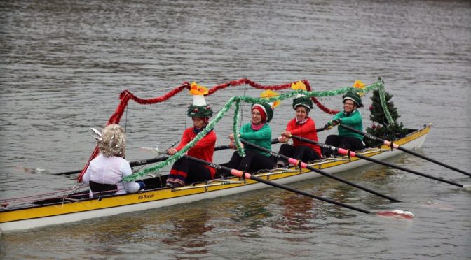 Mit 16:10 Minuten eröffnete der Männer-Vierer mit Klaas Pietsch, Thomas Diekgerdes, Michael Fiala, Tom Lasse Pietsch und Canan Dockendorf am Steuer gleich mit einem Sieg vor Mainz und Mannheim. Der Mixed-A-Vierer für Regattanovizen mit Jürgen Reiland, Mario Hölzig, Patricia Gries, Elsa Kehl und Christine Bodenstein an den Steuerseilen war nach 20:29 Minuten im Ziel und kam damit auf Platz drei hinter dem Mannheimer RC und der Binger RG. Der Masterinnen-Doppelvierer D mit Marion Peltzer-Lehr, Canan Dockendorf, Birgit Dillmann, Christine Bodenstein und Steuerfrau Steffi Haase-Goos lag am Ende im 5-Boote-Feld genau 1 Minute vor den zweitplatzierten Ruderinnen aus Mainz. Claudia Mößner, Cornelia Paßberg, Susanne Fuchs, Monika Wels und Steuerfrau Gabriele Mülberger wurden in der Altersklasse E fünfte und durften sich mit dem Titel „Bestdekorierter Nikolaus Vierer“ schmücken.